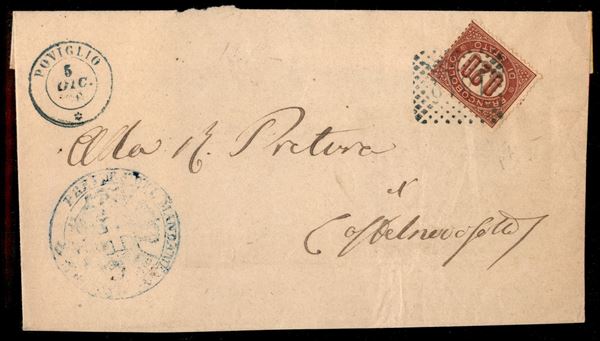 Numerale a punti di Piviglio (azzurro - P.ti 9) - 20 cent (3 - Servizio) su frontespizio di lettera per Castelnuovo del 5.12.78