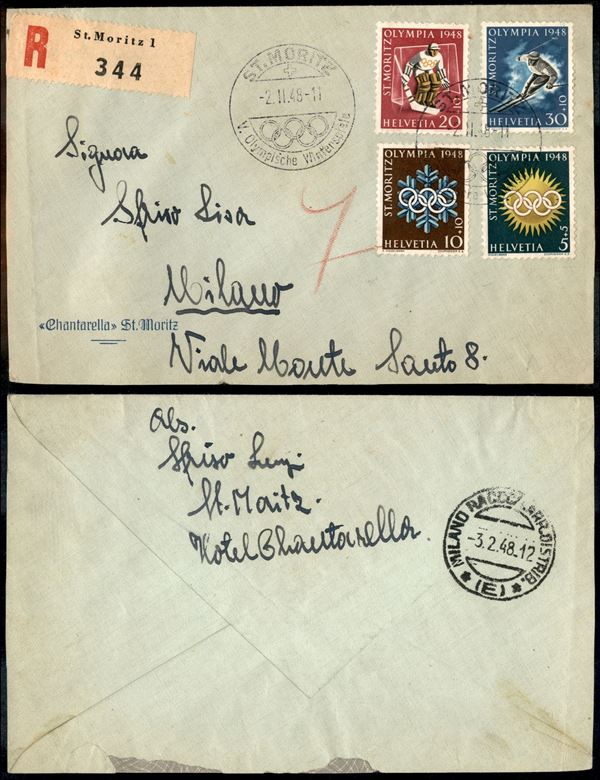 Olimpiadi (492/495) - serie completa su raccomandata da St. Moritz a Milano del 2.2.48