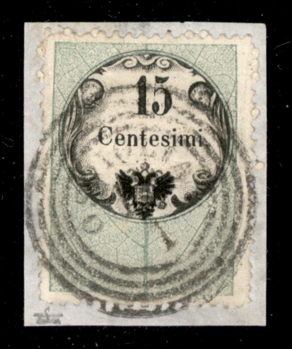 Ostiglia (P.ti 5) - 15 cent (3) usato su frammento - Fiecchi + A./E. Diena
