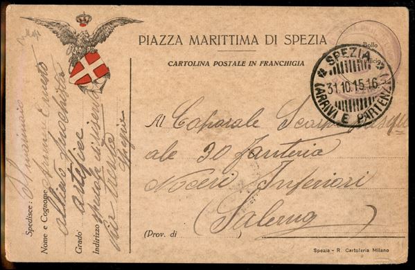 Piazza Marittima di Spezia - cartolina postale in franchigia da Spezia a Nocera del 31.10.15 - Chiavarello