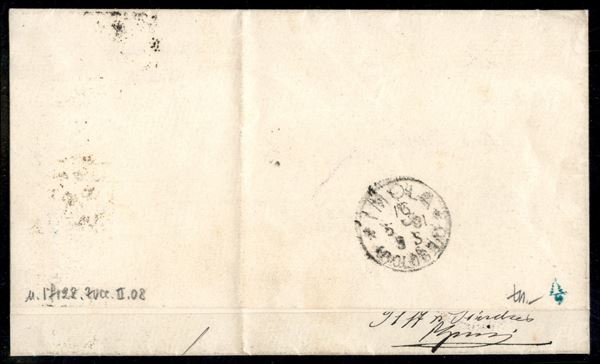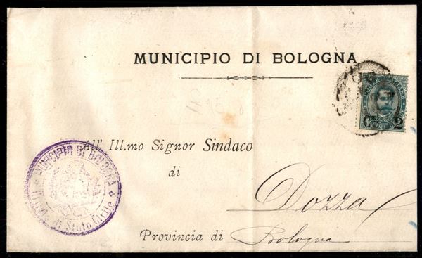 Piego stampato affrancato con 2 cent su 5 cent Umberto (56) da Bologna 15.5.91 per Dozza - ex coll. Provera