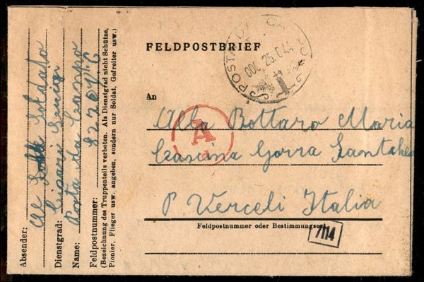 Posta da Campo - Felpostbrief per Vercelli del 25.6.44