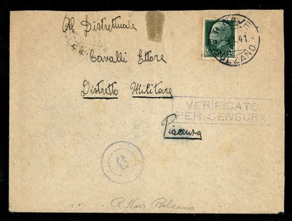 R Nave Bolzano - 25 cent (248) su busta per Piacenza del 9.1.41