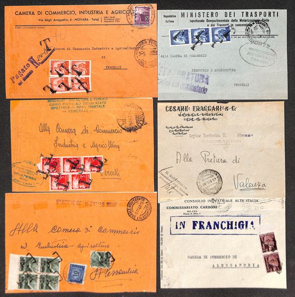 REPUBBLICA - 1945/1949 - Democratica - 6 frontespizi con valori della serie usati come Tassa - interessante