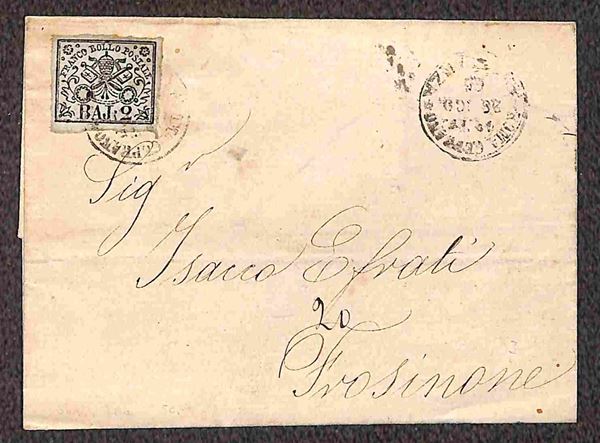 Roma Ceprano Ambulanza (P.ti 7) - una testatina + una lettera col 2 bai (3Aa) del 1865