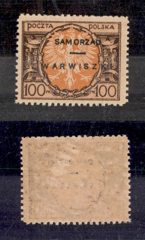 Samorzad Warwiszki - 1923 - 100 marchi (2) - gomma integra - cert. AG