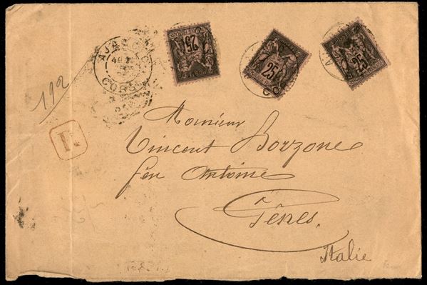 Tre 25 cent (80) su raccomandata da Ajaccio a Genova del 24.3.95