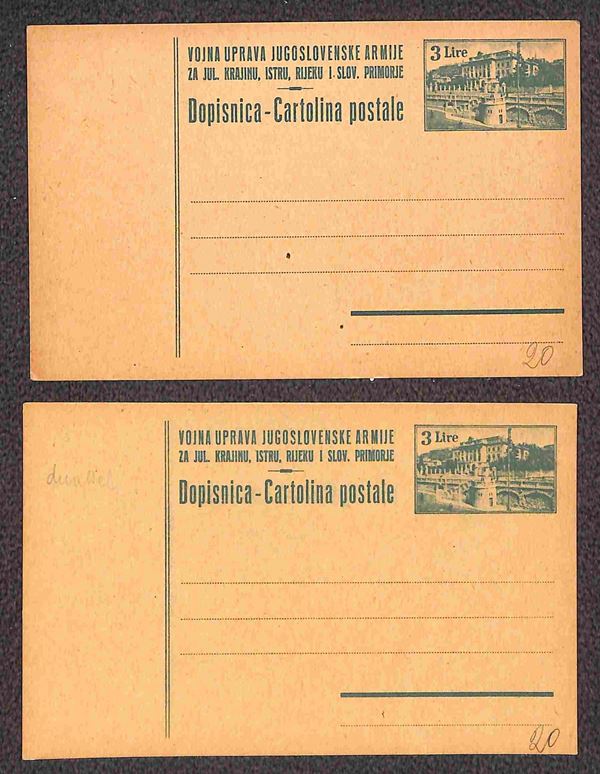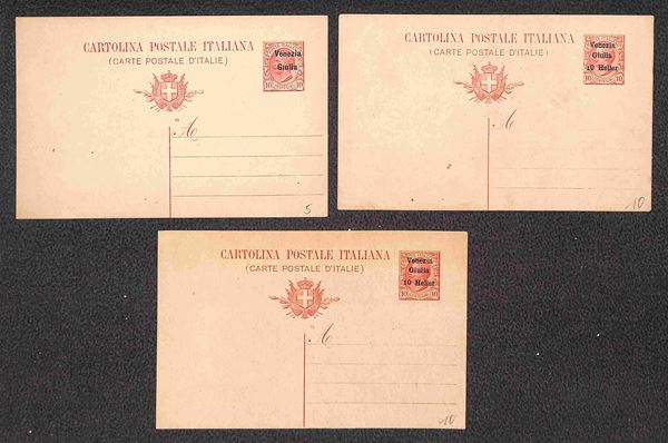 Tre cartoline postali di Venezia Giulia (4 + 5 due) + due cartoline postali di Fiume/Occupazione Jugoslava (6) - tutte nuova