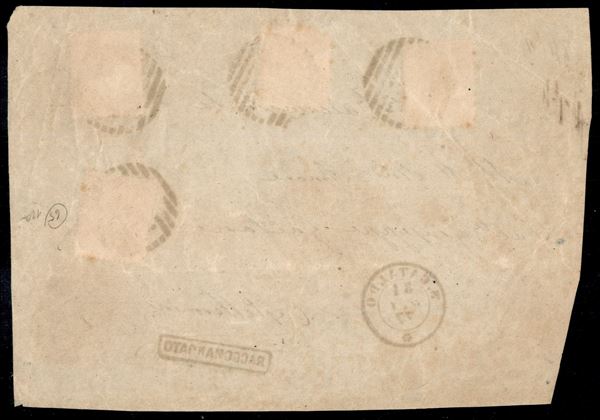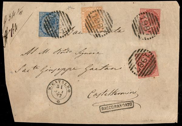 Tricolore - 4 valori (20 + 20 + 27 + 28) su frontespizio di raccomandata da S. Cataldo a Casteltermini del 31.10.77 - Chiavarello