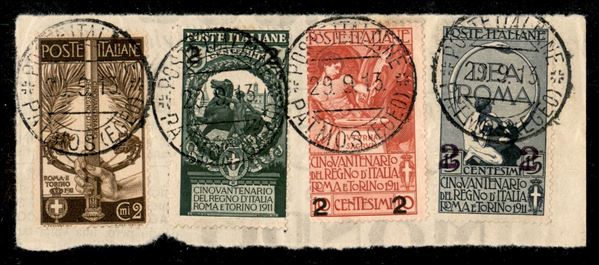 Unità d'Italia (Regno 92 + 99/101) - 4 valori usati su frammento - Patmos 29.9.13