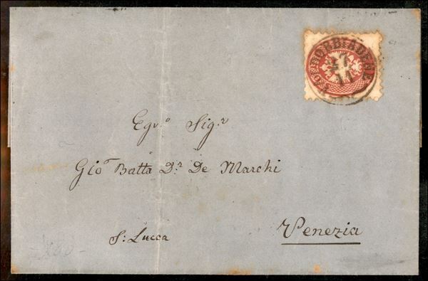 Valdobbiadene (rosso bruno - P.ti 7) - 5 soldi (43) su lettera per Venezia