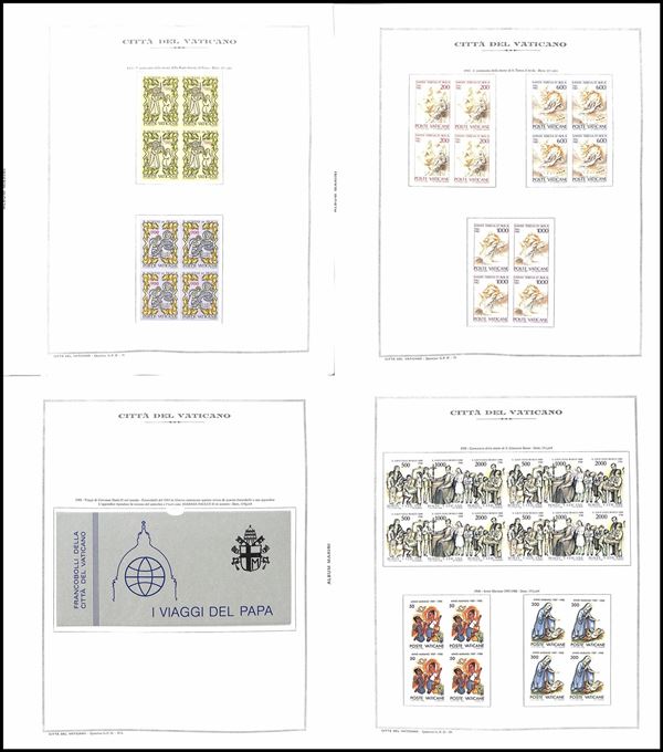 VATICANO - 1982/1992 - Collezione completa in quartine con foglietti libretti e Posta Aerea del periodo montata in album King Marini - gomma integra (1.800+)