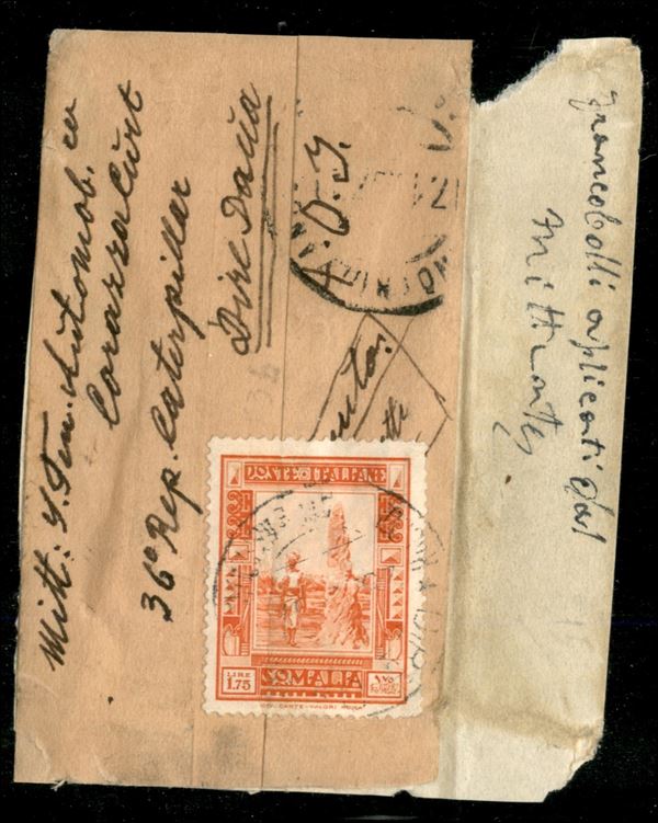 1.75 lire Pittorica (224) su frammento di pacco da Dire Daua (raccomandate) del 25.9.37
