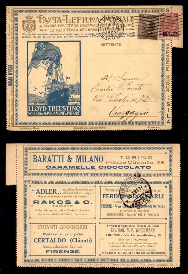 10 cent (13) + complementare (84) - busta speciale (Nazionale 42) da Firenze a Viareggio del 26.8.23