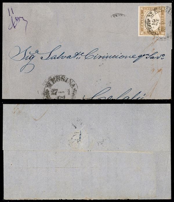 10 cent (14D - bistro oliva) - parte di lettera da Messina a Cefalù del 27.1.62