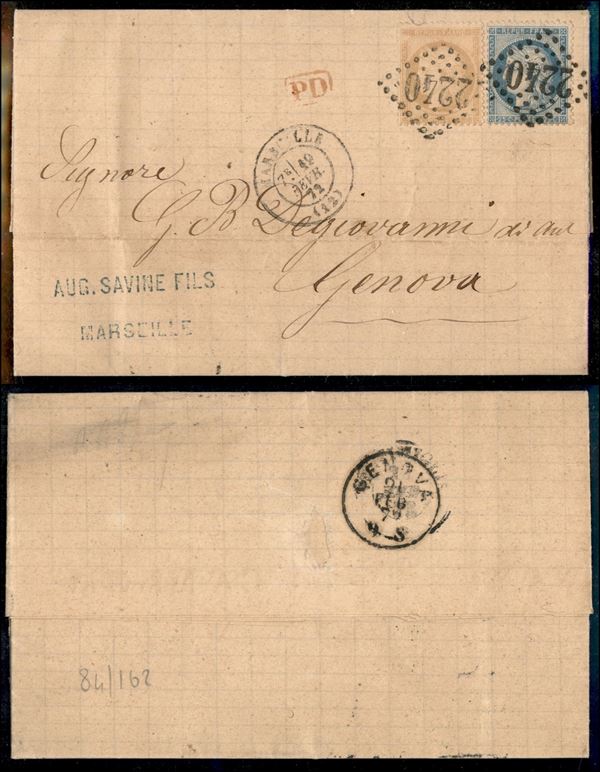 15 cent (50) + 25 cent (51) – lettera da Marsiglia a Genova del 19.2.72