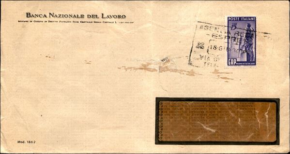 15 lire ERP (602) isolato su busta del 18.6.49
