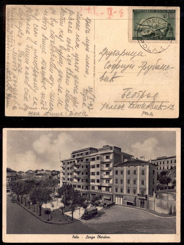 1,50 dinari (Jugoslavia) su cartolina da Pola del 31.10.47