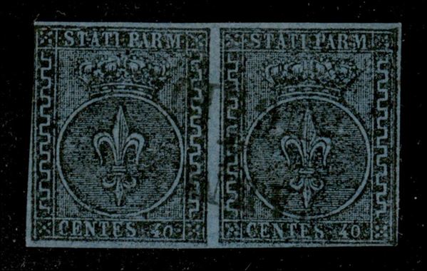 1852 - 40 cent (5a - azzurro chiaro) - coppia orizzontale - stretta a sinistra in alto - Diena + cert. AG (5.500)