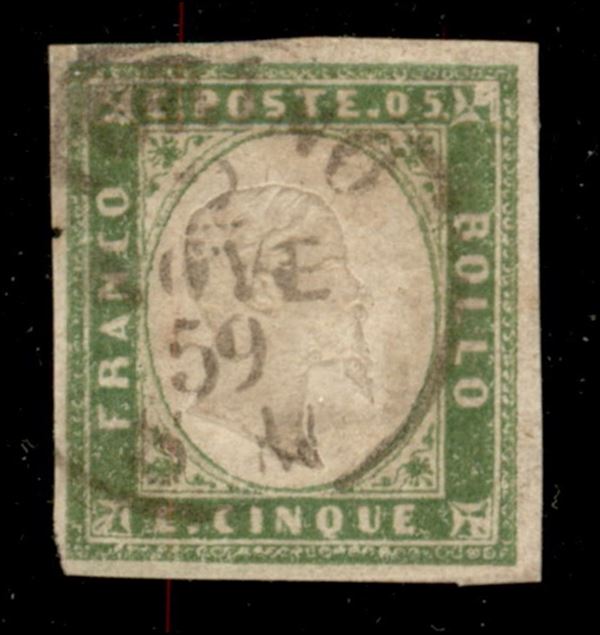 1859 - 5 cent (13Ba - verde giallo) usato a Torino (400)