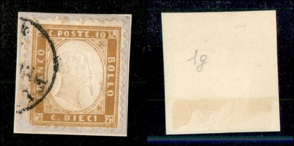 1862 - 10 cent (1g) bordo foglio su frammento - angolo inferiore sinistro arrotondato (950)