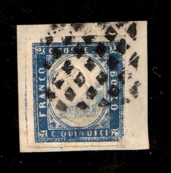 1863 - 15 cent (11) usato su frammento - doppia impressione speculare del riquadro (in basso a destra) - difettoso in angolo