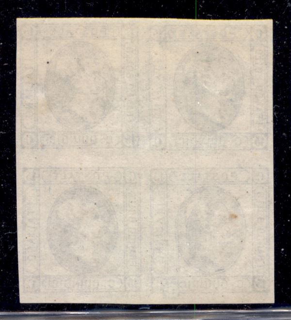 1863 - 15 cent Litografico (13) - in quartina con pezzo inferiore destro (13d) con linea non interrotta sotto Q - nuovi senza gomma