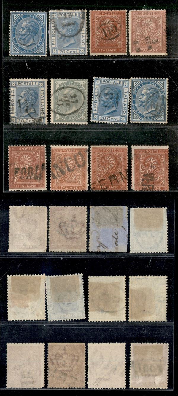 1863/1877 - Dodici valori del periodo con annullamenti occasionali - da esaminare