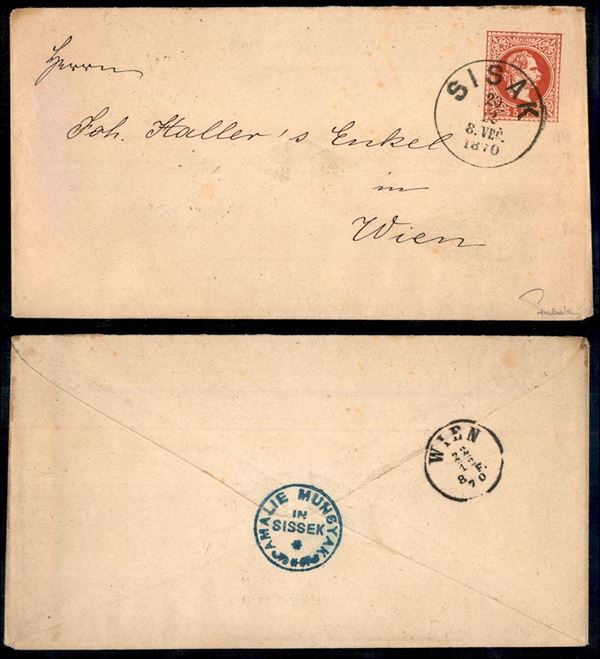 1870 - Intero postale 5 kreuzer da Sisak a Vienna