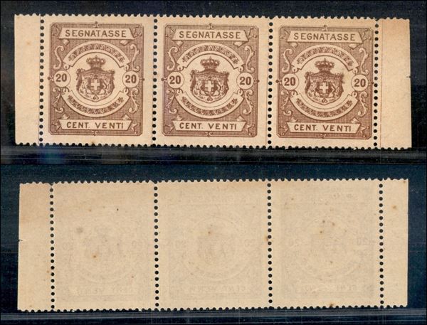 1870 - Saggi - 20 cent (Unificato 68) - striscia di tre - gomma integra