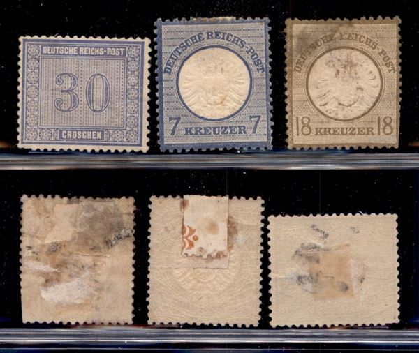 1872 - 3 valori (13 + 26 + 28) assottigliati al retro - gomma originale - da esaminare