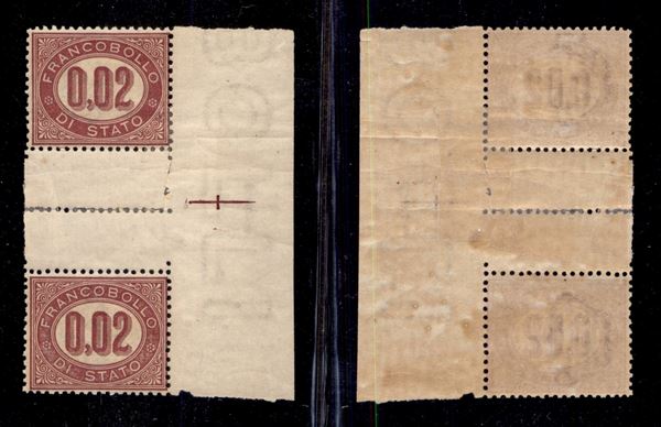 1875 - 2 cent (1) - coppia verticale con interspazio al centro - gomma originale (500)
