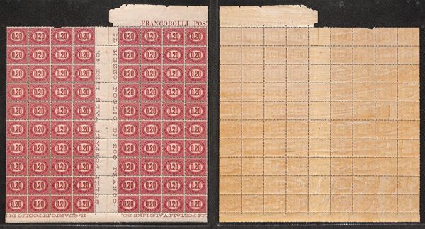 1875 - 20 cent (3) - blocco di 80 con interspazio verticale al centro - gomma integra - due posizioni con filigrana croce (2 + 10) - gomma integra