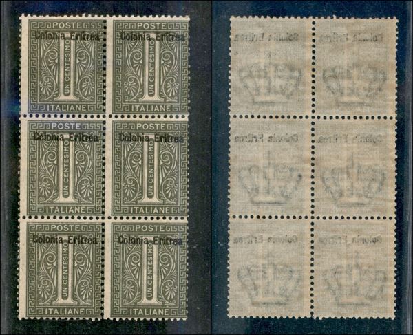 1893 - 1 cent Torino (1) - blocco di 6 - nuovo con gomma integra (180+)