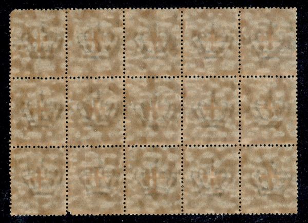 1897 - 5 cent Stemma (67) - blocco di quindici - gomma integra (950)