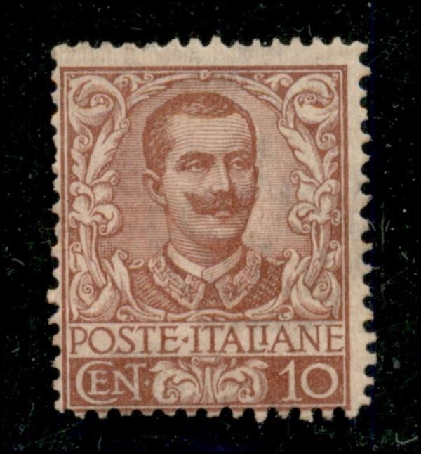 1901 - 10 cent Floreale (71) - gomma integra - lieve piega orizzontale in basso e dentellatura carente a sinistra