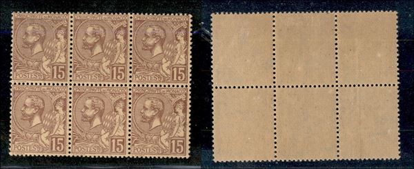 1901 - 15 cent Alberto I (24) - blocco di 6 pezzi - esemplare centrale alto linguellato il resto gomma integra