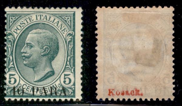 1908 - 10 para su 5 cent Leoni (8cd) - soprastampa in basso - gomma originale (300)