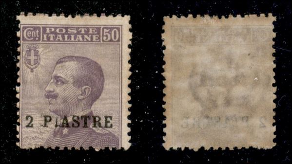 1908 - 2 piastre su 50 cent (12m) con cifra stretta - gomma originale (700)