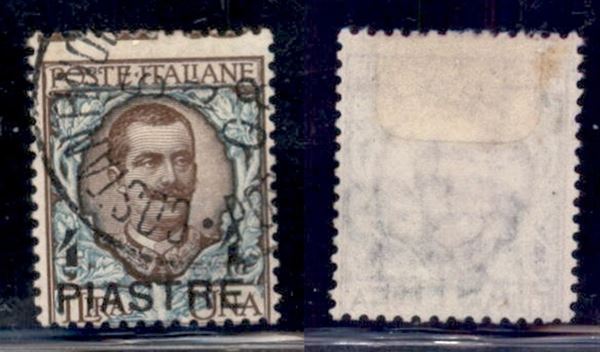 1908 - 4 piastre su 1 lira (16) usato - dentellatura spostata in alto (sulle diciture marginali)