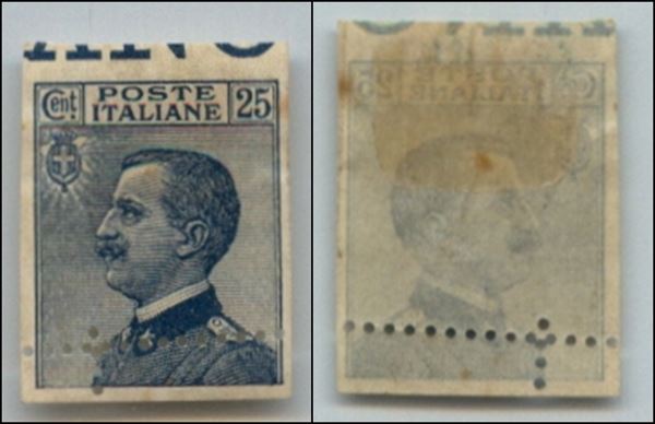 1908 - Dentellatura solo in basso - 25 cent Michetti (83 varietà) bordo foglio in alto - dentellatura obliqua spostata a sinistra - gomma originale - non catalogato