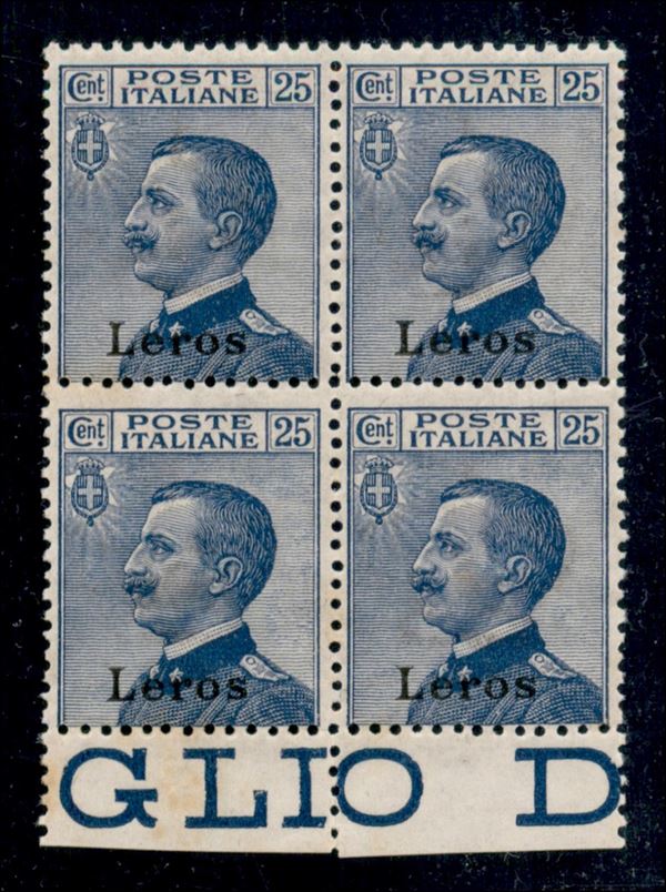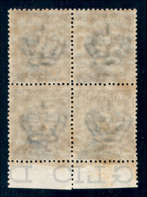 1912 - Quartina del 25 cent Michetti (5) - bordo foglio - gomma integra (1100)