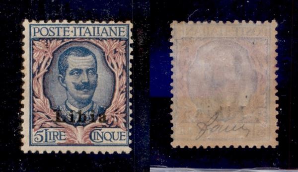 1915 - 5 lire Floreale (11) - gomma originale con invisibile traccia di linguella - cert. AG (660)