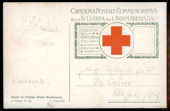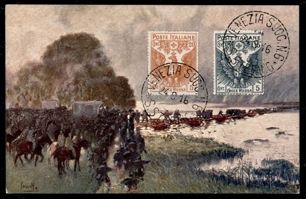 1915/1916 - Croce Rossa (102/105) - serie completa - usati su tre cartoline diverse annullo Venezia Succ. N. 6 - S. Stefano 24.9.16