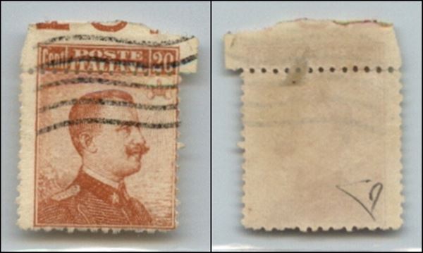 1917 - 20 cent (109faa) bordo foglio con dentellatura superiore spostata in basso - non quotato usato – Diena