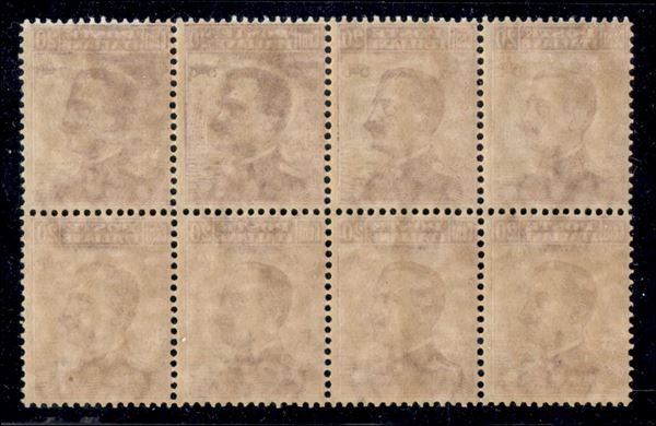 1917 - 20 cent Michetti (109) - blocco di otto - inchiostrazione da normale a impastata (su 3 pezzi) - gomma integra - non comune (200++)