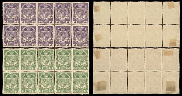 1917 - Stemma (4/5) - due valori in blocchi di 10 - linguellati agli angoli - 4 gomma originale + 6 gomma integra