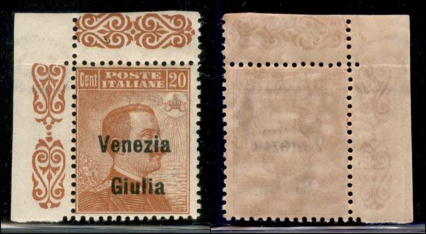 1918 - 20 cent Michetti (23 eabf) - soprastampa in basso - angolo di foglio - gomma originale (80+)