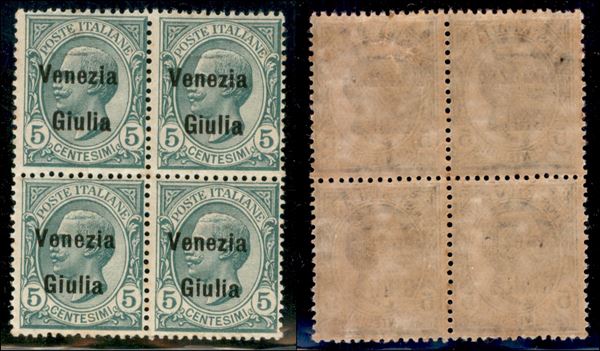 1918 - 5 cent Leoni (21) - in quartina - gomma integra (200+)