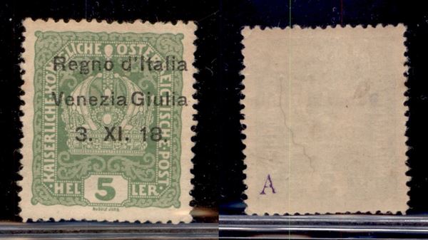1918 - 5 heller (2gcaa) con soprastampa a sinistra - gomma originale (120)